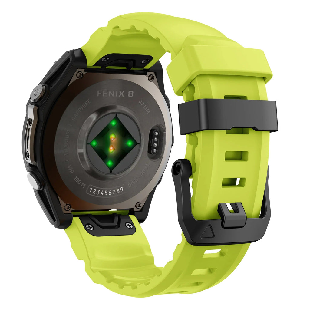 La pulsera de silicona Garmin Quick Fit Super Outdoor Sports está diseñada para ofrecer durabilidad y comodidad durante actividades al aire libre intensas. Fabricada con silicona de primera calidad, ofrece excelente flexibilidad y resistencia al sudor y a las inclemencias del tiempo. Esta pulsera garantiza un ajuste seguro y un rendimiento duradero, lo que la convierte en un accesorio esencial para atletas y entusiastas de las actividades al aire libre.
