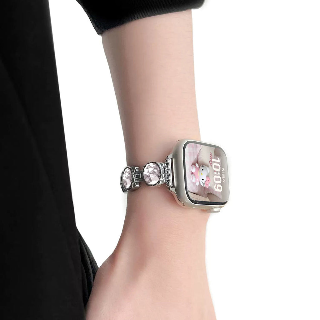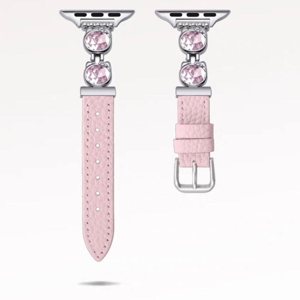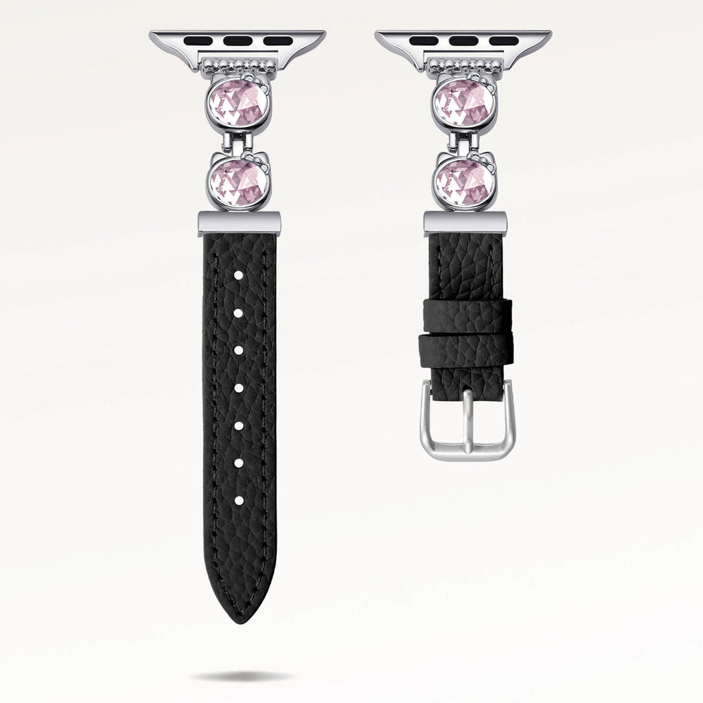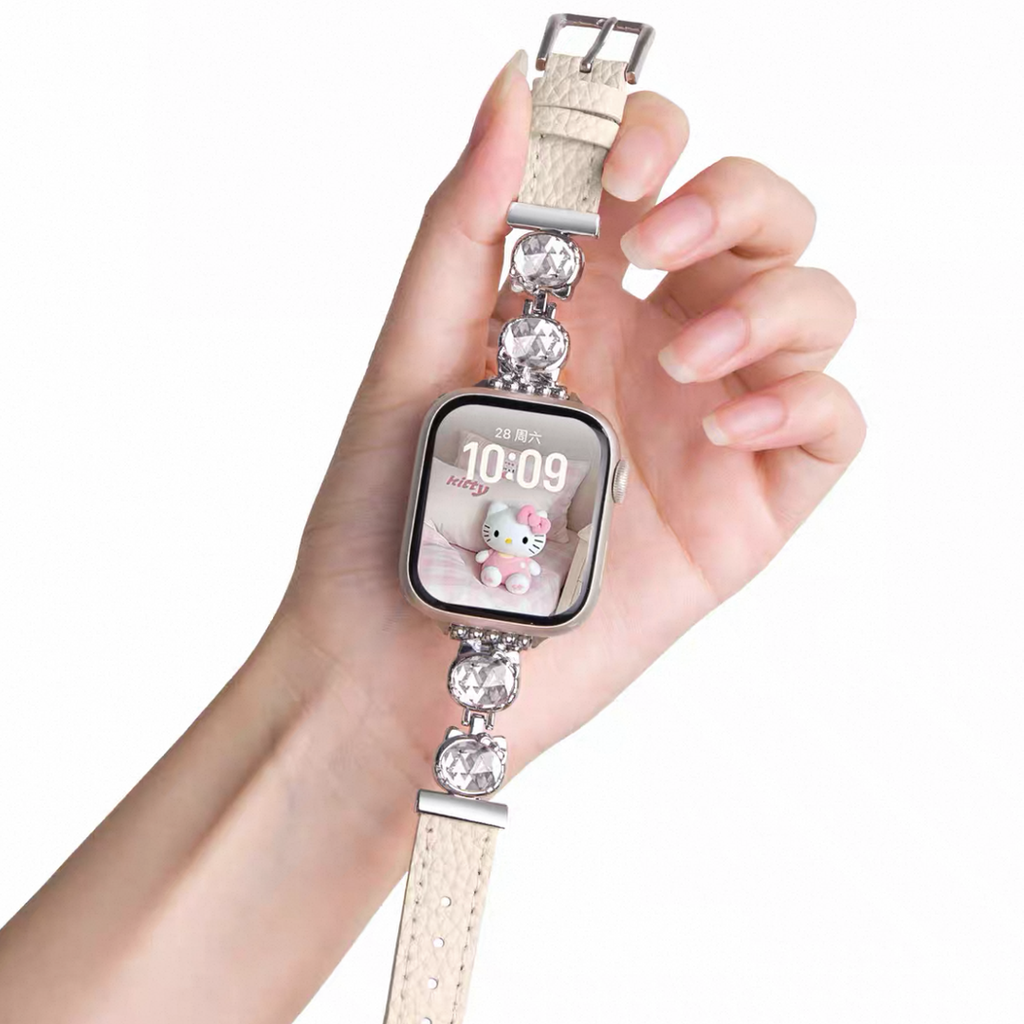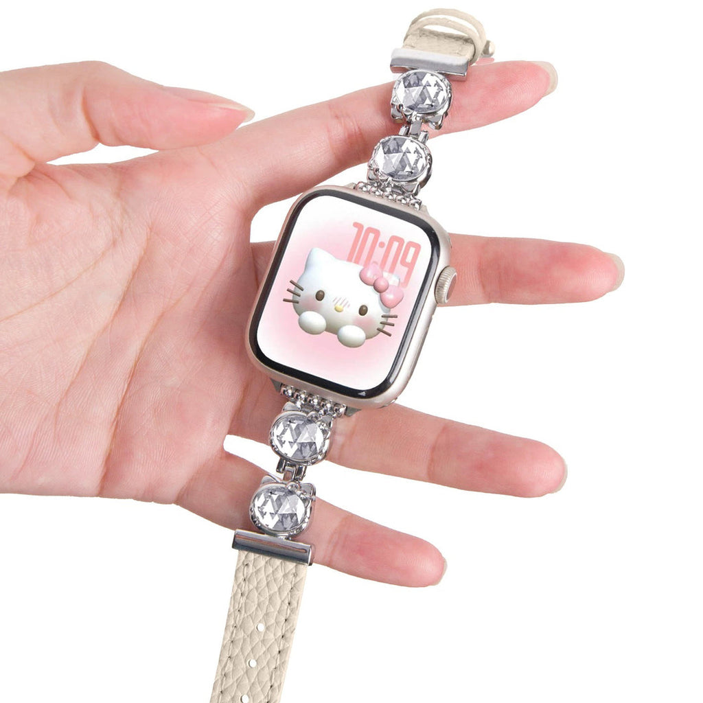 La correa de cuero KT para Apple Watch combina una refinada artesanía con un diseño distintivo inspirado en la querida Hello Kitty. Fabricada en cuero de primera calidad, garantiza durabilidad y un ajuste cómodo y seguro. Su diseño se integra a la perfección con tu Apple Watch, ofreciendo estilo y funcionalidad para una apariencia elegante y profesional.
