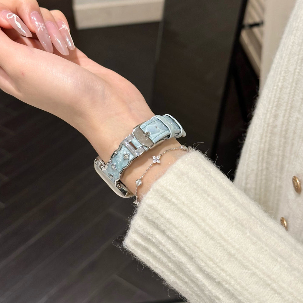 Realza tu Apple Watch con la pulsera Galaxy Diamond, diseñada para combinar lujo y precisión. Fabricada con materiales de alta calidad, esta pulsera ofrece un ajuste seguro y un brillo exquisito que complementa la elegancia de tu dispositivo. Experimenta durabilidad y elegancia, perfecta para profesionales que buscan un accesorio sofisticado que realce su uso diario.