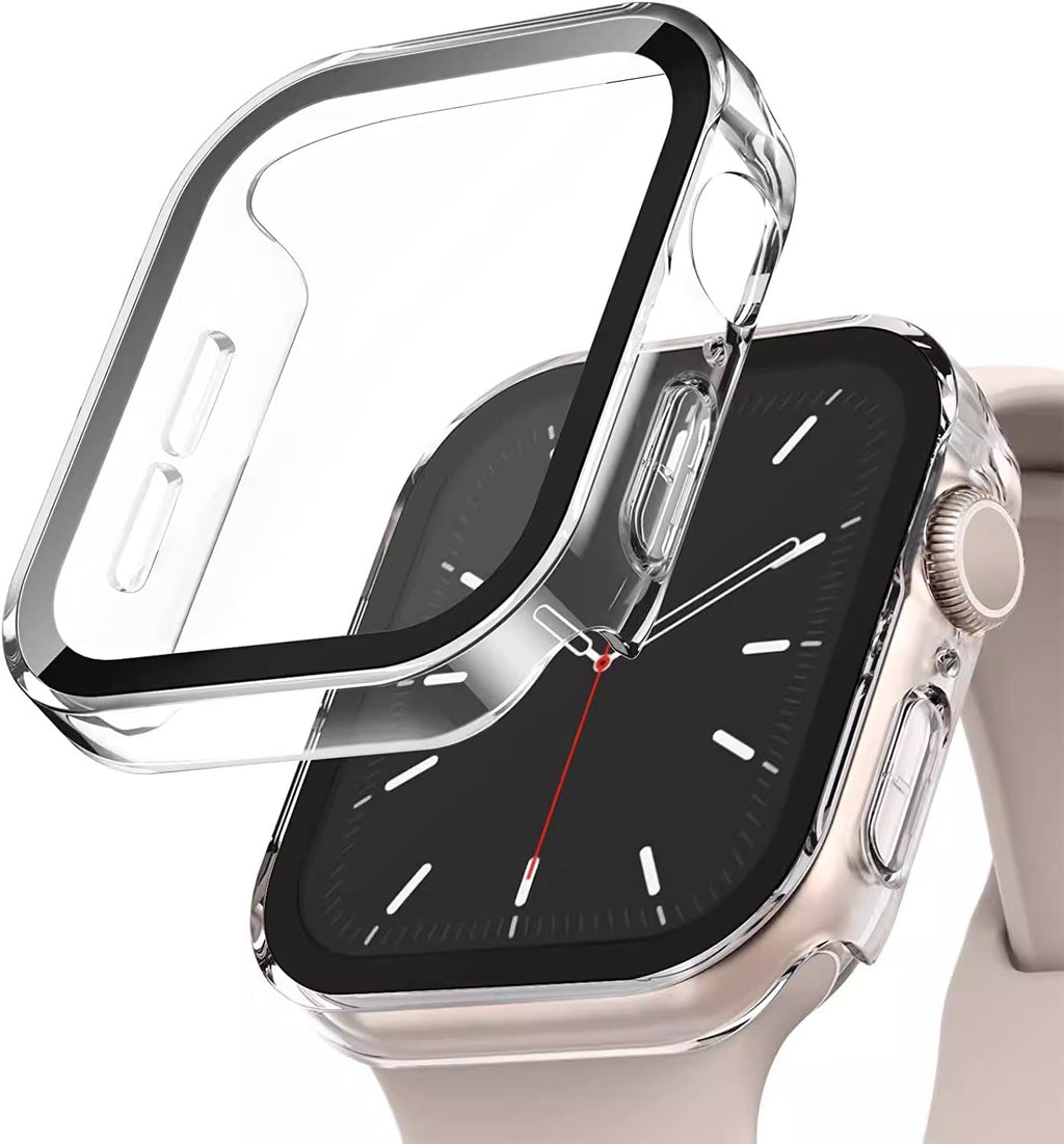 Estuche de PC duradero incorporado con protector de pantalla de vidrio templado transparente HD delgado, protege completamente su reloj inteligente Apple Watch contra rasguños, golpes y caídas accidentales. Súper fácil de instalar por su diseño a presión y carga directamente.